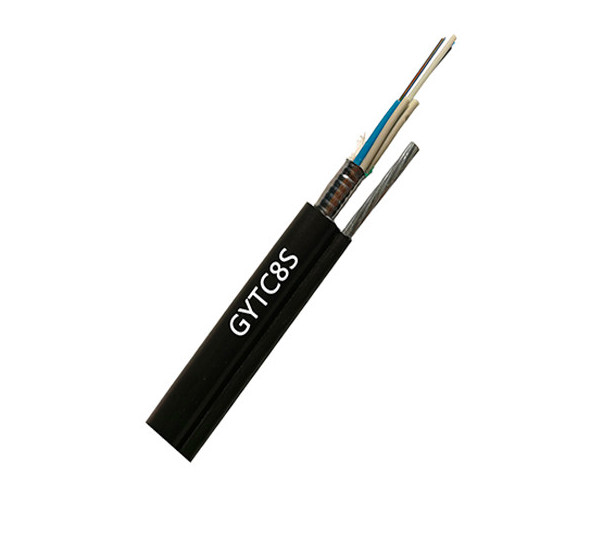 The fibers are placed in a loose tube made of high modulus plastic. The tubes are filled with a water-resistant filling compound. A FRP locates in the center of core as a non-metallic strength member. The tubes (and fillers) are stranded around the strength member into a compact and circular cable core. After wrapped with the water blocking tape, this part of cable accompanied with the stranded wires as the supporting part are completed with a polyethylene (PE) sheath to be figure 8 structure. This kind of cable is specifically applied for self-supporting aerial installation.